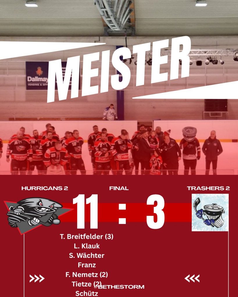 Nach einer sensationellen Mannschaftsleistung fegen wir die Trashers verdient mit 11:3 aus der Arena. Die Hurricans 2 steigen damit in die DNHL 6 auf.